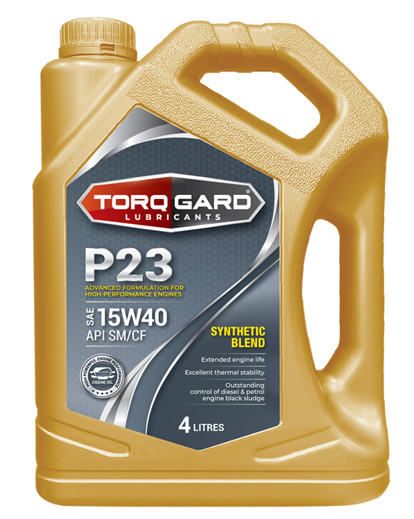 TORQGARD P23 is a high quality 15W40 synthetic blend engine oil with superior metal protector. Specially designed to meet the specification of API SM/CF for use in high performance gasoline and diesel engines operating under most severe and high temperature conditions. It also exceeds the requirements standard of all domestic and foreign automotive manufacturers who specify API SM/CF.